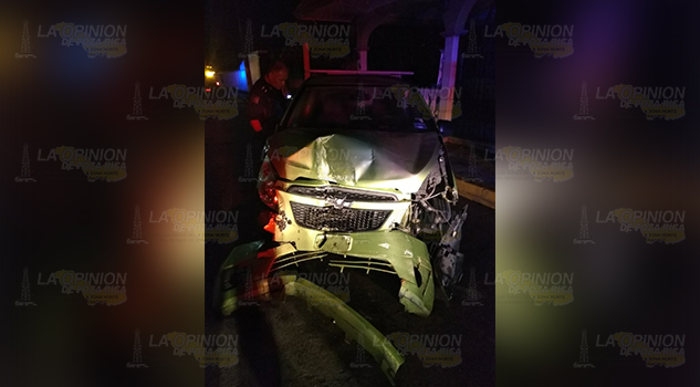 Tuxpan, Ver.- Marino que presuntamente manejaba su automóvil a exceso de velocidad resultó lesionado tras estrellarse en la fachada del restaurante “Chilolos”, provocando también cuantiosos daños materiales, personal de Tránsito aseguró el vehículo.