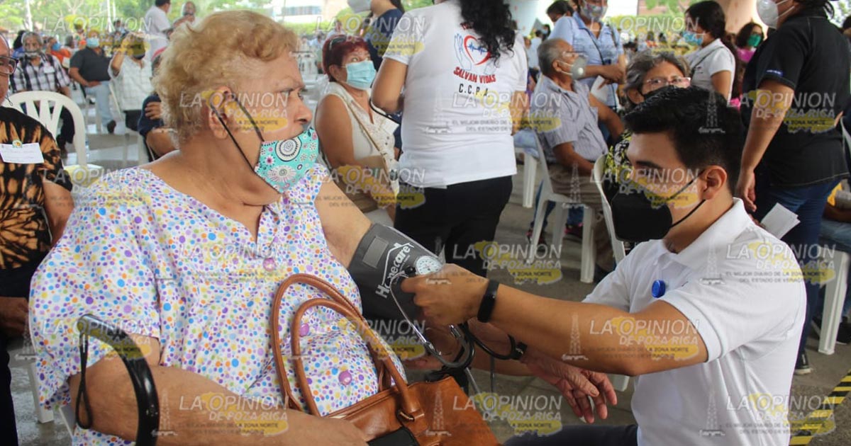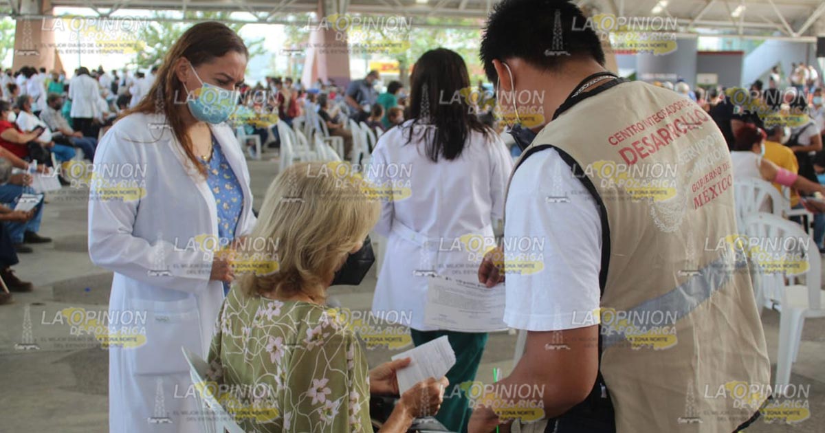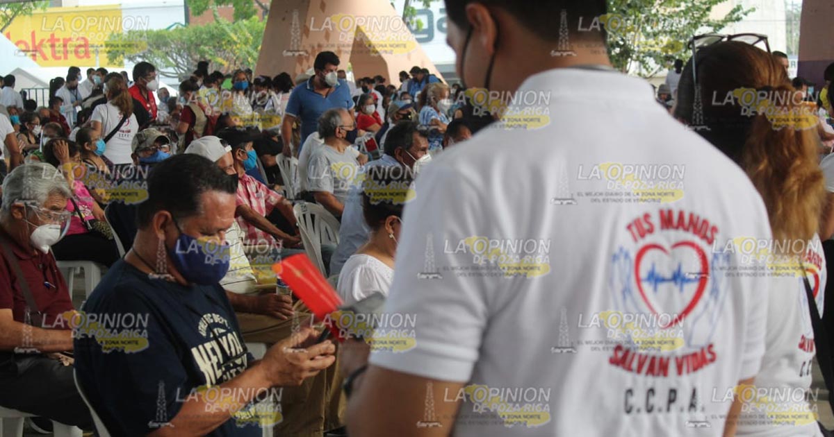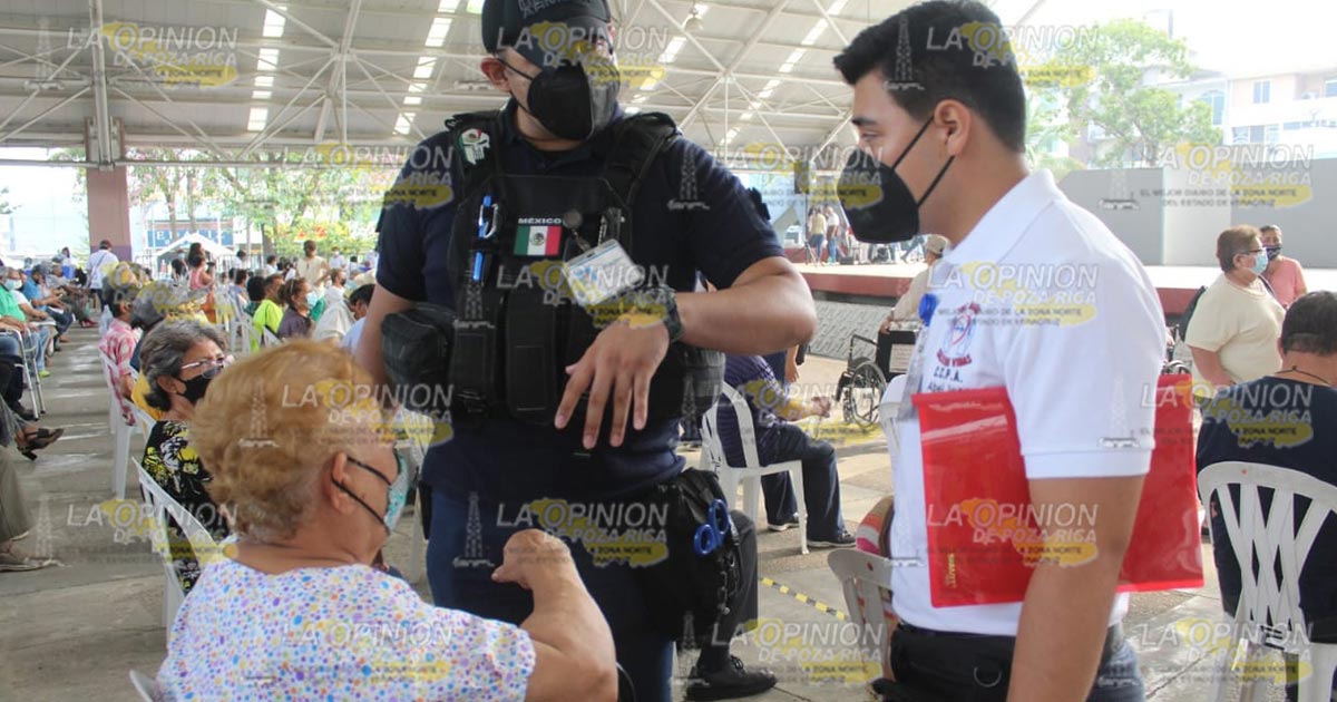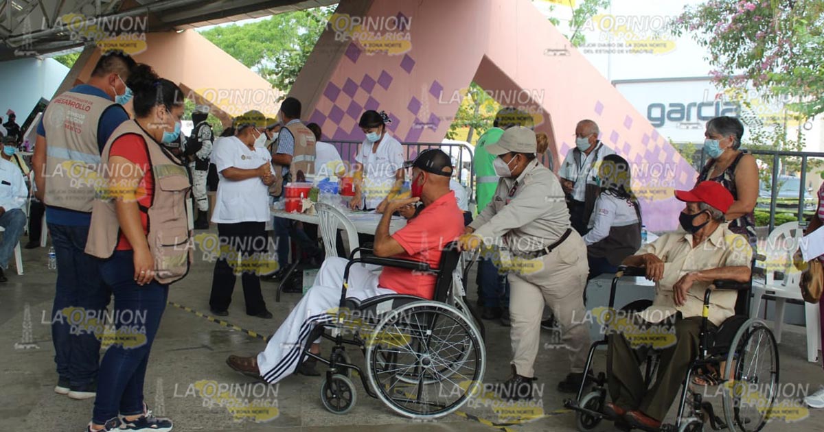 Poza Rica, Ver.- Con un pequeño retraso de 40 minutos dio inició la segunda Jornada de Vacunación para las personas de la tercer edad, que desde temprana hora acudieron al módulo de vacunación de la Plaza Cívica, con el objetivo de ser los primeros en poder recibir la segunda dosis de la vacuna Pfizer, dónde en el primer día se aplicarán más de 6 mil vacunas .