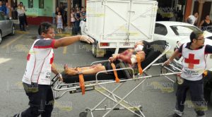 Fue al filo de las 17:20 horas, cuando a los socorristas y elementos de la Secretaría de Seguridad Pública Municipal (SSPM), les informaron que dos personas habían resultado heridas en las inmediaciones del kiosko municipal.
