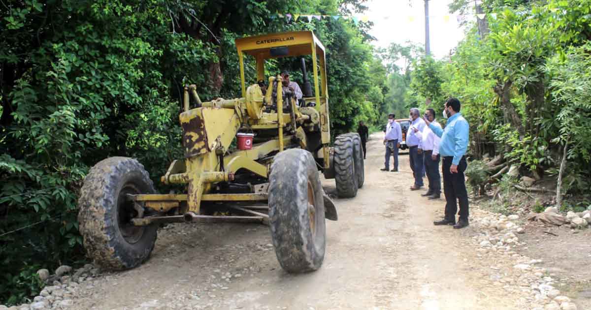 Con el apoyo de maquinaria de la Dirección de Obras Públicas a cargo de Juan Arturo Meza Guerrero, trabajadores de esta dependencia laboran en la rehabilitación de la vialidad principal de terracería que permite el acceso a la localidad del Ojital.