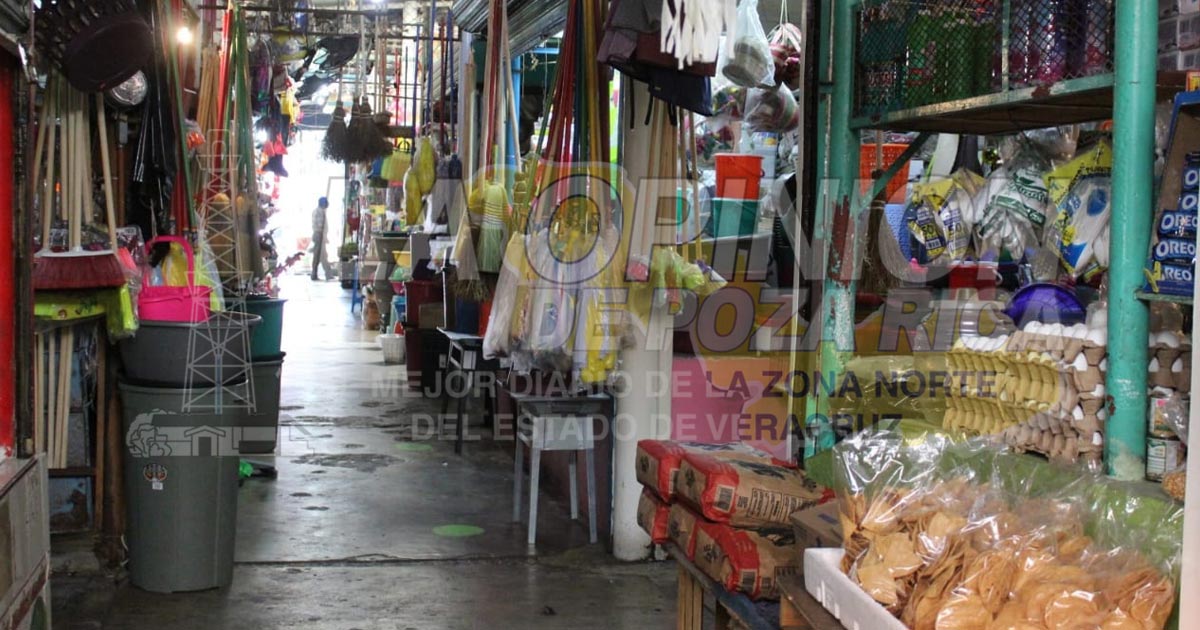 Poza Rica, Ver.- Además de la falta de agua y de apoyos oficiales, locatarios del mercado 27 de Septiembre se enfrentan a una situación crítica por la pandemia de Covid-19, que ha provocado muy bajas ventas en los últimos 7 meses, por lo que el aniversario del inmueble, en este domingo próximo, será una fecha en la que no habrá nada que celebrar señalaron los vendedores.