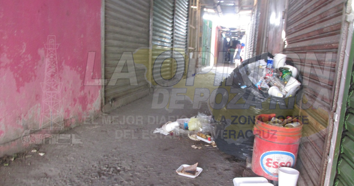 Tuxpan, Ver.- Pese a que el año pasado las autoridades sanitarias detectaron plagas de cucarachas y ratas, y sugirieron la necesidad de una limpieza integral a todas sus instalaciones, hasta la fecha el mercado municipal “Héroes del 47” continúa insalubre y sus locatarios creándole basureros en su interior y exterior.