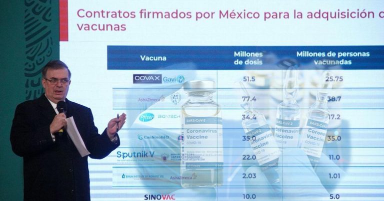 Ciudad de México.- El gobierno mexicano tiene comprometidas en contratos 232 millones de dosis de distintas vacunas contra el coronavirus, así lo dio a conocer la mañana de este martes el secretario de Relaciones Exteriores Marcelo Ebrard Casaubón. “En total son 232.33 millones de dosis a esta fecha contratadas, prepagadas y comprometidas”, informó el canciller … Sigue leyendo México tiene seguras 232 millones de vacunas