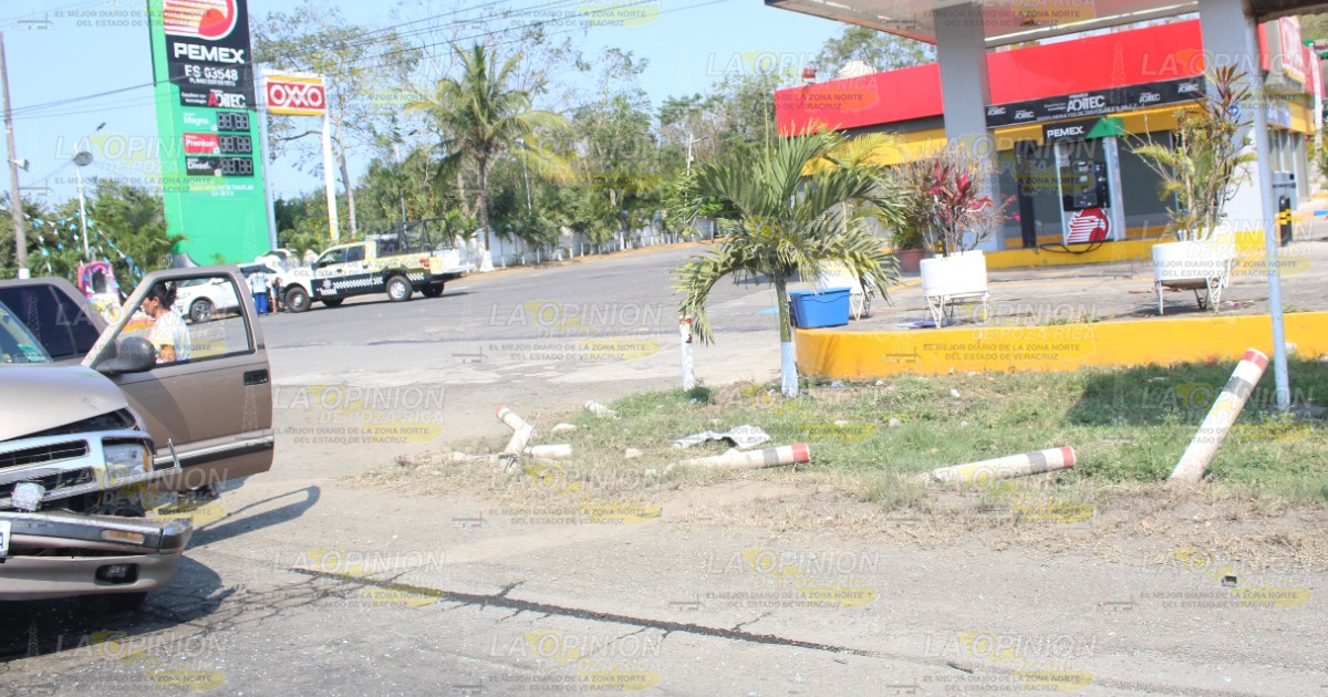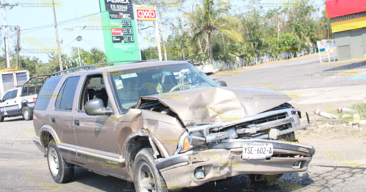 El fuerte y aparatoso percance se registró al filo de las dos de la tarde del lunes, a la altura de la gasolinera FOY ubicada en carretera Pachuca – Tuxpan, tramo Poza Rica – Tihuatlán, cuando la conductora del Vento se encontraba estacionada frente a la gasolinera e intentó atravesar la carretera, provocando el impactó con la camioneta Blazer, después como huracán arrasó todo a su paso, hasta terminar ensartándose entre el carguero y el poste.