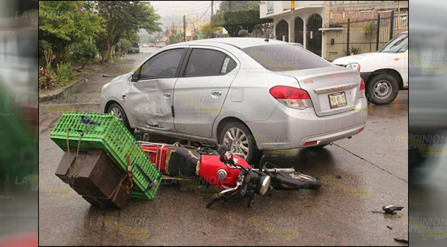 Aparatoso accidente automovilístico dejó una persona lesionada, así como daños materiales por varios miles de pesos, mismo que se registró en la colonia Cazones en las primeras horas de la mañana entre un vehículo particular y una motocicleta.
