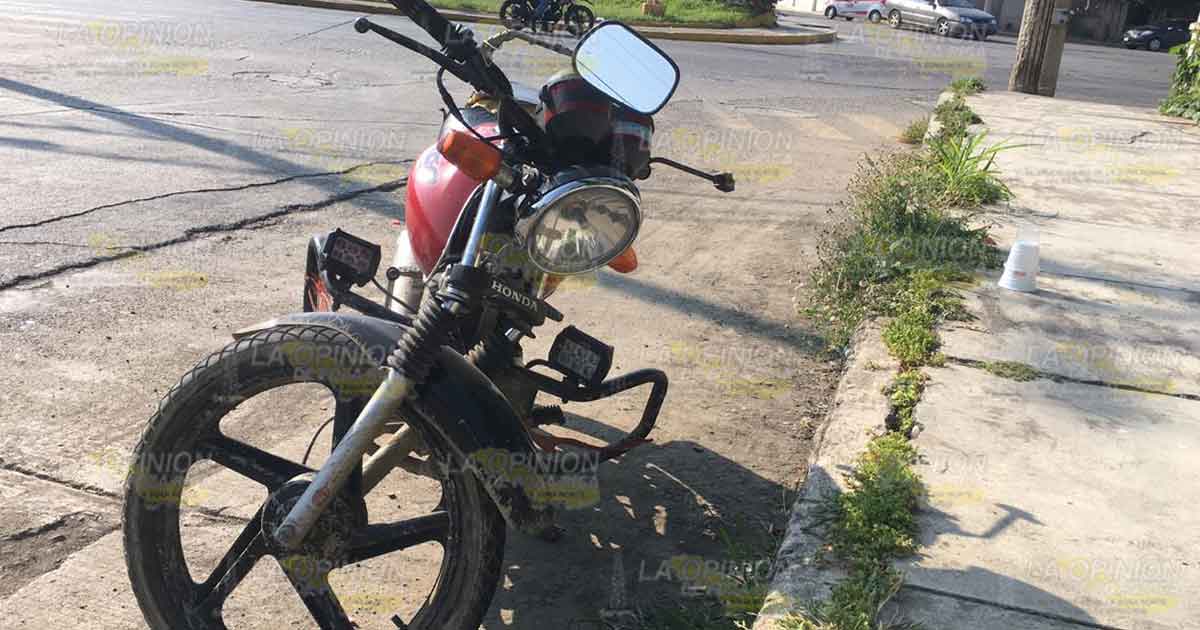 Poza Rica, Ver. – Un desafortunado motociclista se estrelló contra un vehículo de alquiler, destrozó su unidad de la parte delantera, pero no resultó con heridas de consideración, toda vez que se fue con el taxista a buscar un mecánico.