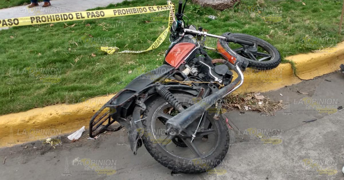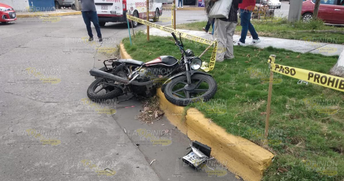 El lesionado viajaba en una motociclista de la marca Italika, de color negro con naranja, la cual quedó destrozada arriba la banqueta.