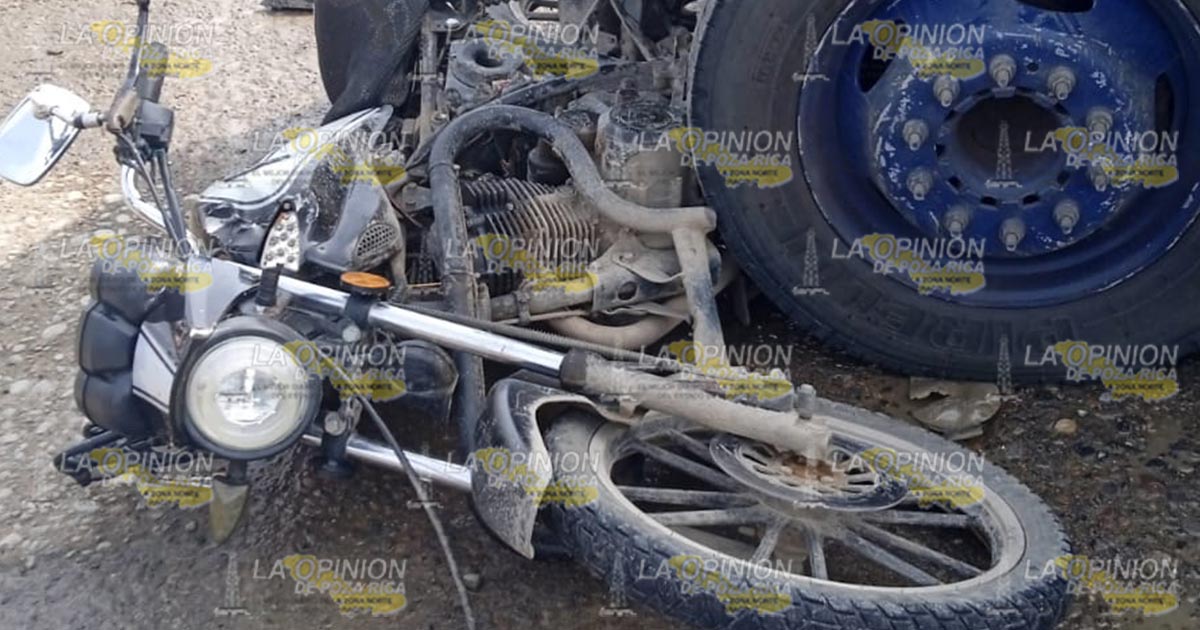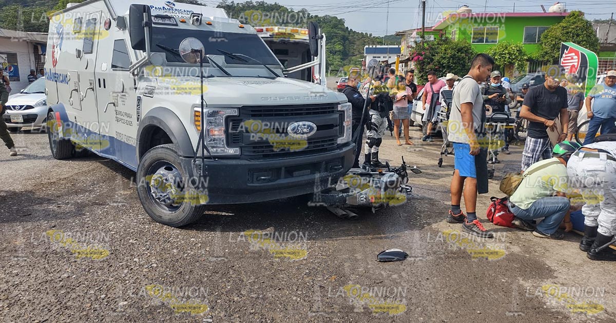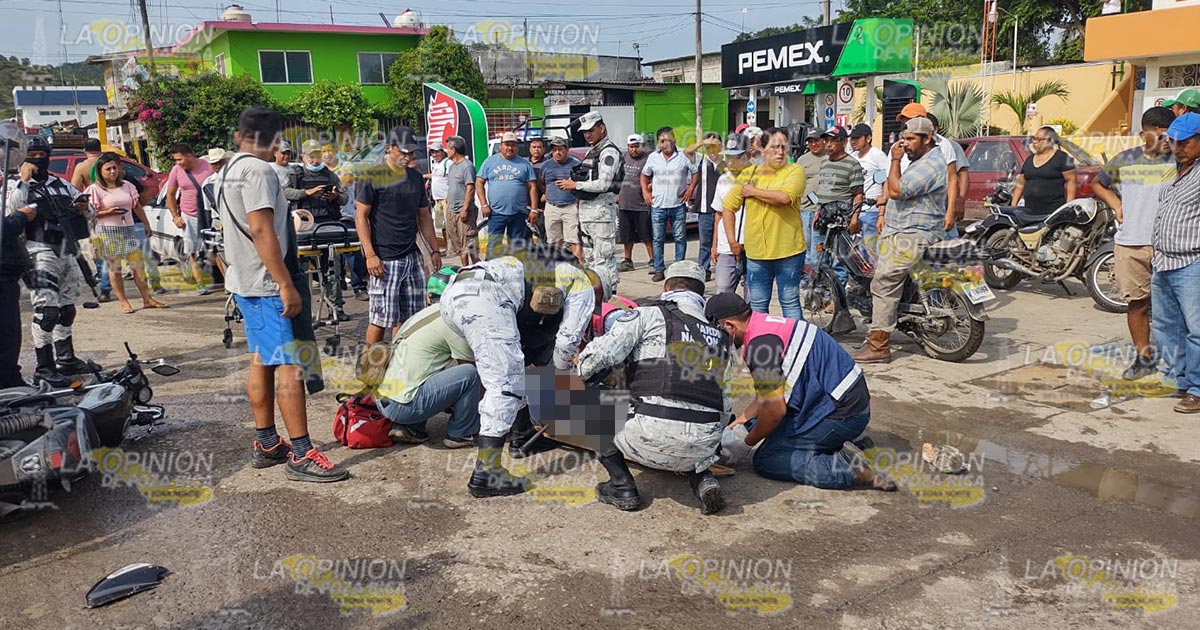 Álamo, Ver – Un accidente se presentó la mañana de este miércoles en la avenida 20 de Noviembre de la localidad del Estero del Ídolo cuando una camioneta de valores embistió al conductor de una motocicleta, paramédicos locales atendieron al lesionado, quien fue trasladado hacia el hospital general.