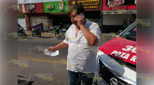 Poza Rica, Ver.- Un joven terminó lesionado luego de impactar su motocicleta contra una unidad de renta cuando éste daba una vuelta en U sobre la avenida 20 de noviembre en la colonia Cazones.