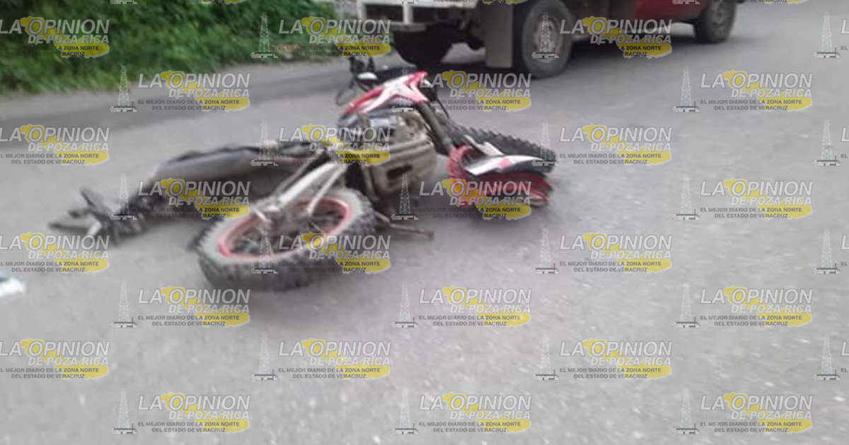 Se trata de una motocicleta de color roja, cuyo conductor, presuntamente al viajar a exceso de velocidad, perdió el control de dicha unidad de dos ruedas y esto provocó que chocara contra una camioneta pasajera de color rojo con lona azul.