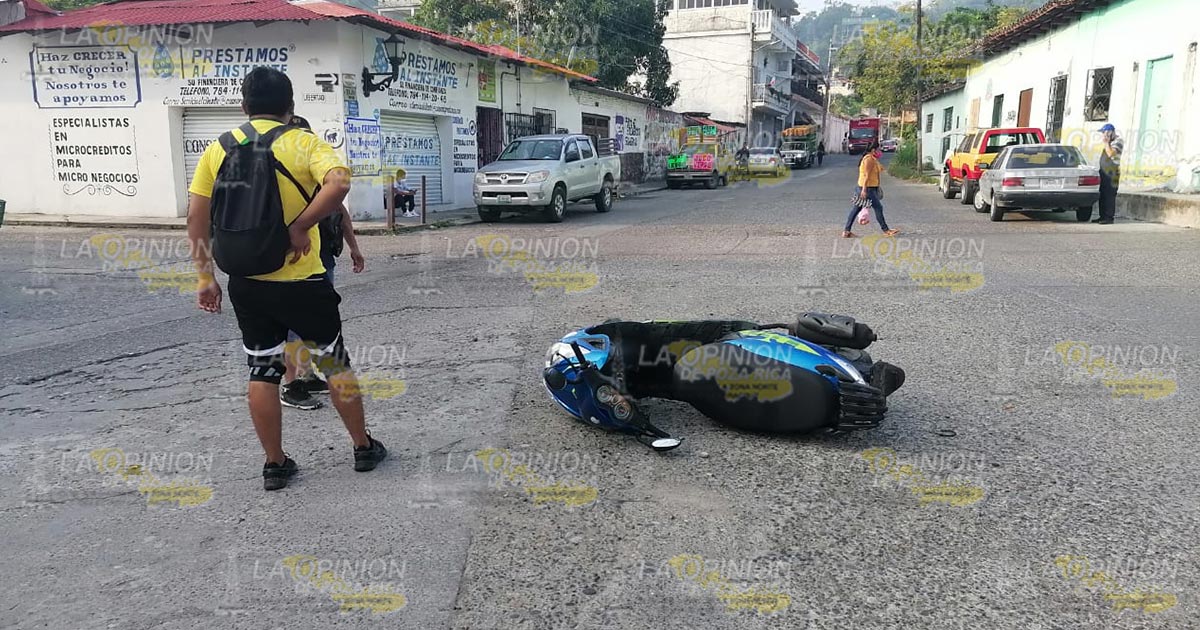 Estos hechos ocurrieron en el cruce de las calles José María Morelos y Libertad, donde circulaba un vehículo particular, cuyo conductor no hizo alto y decidió seguir su camino, sin percatarse que un joven motociclista circulaba por este lugar, mismo que terminó en el suelo debido al impacto.
