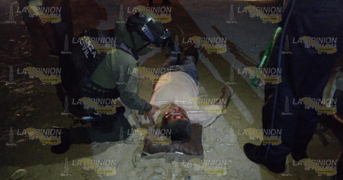Tuxpan, Ver.- Obrero que manejaba su motocicleta bajo los efectos del alcohol terminó por derrapar provocándose diversas heridas en el cuerpo principalmente en el rostro y cabeza, paramédicos de la Cruz Roja Mexicana lo atendieron y trasladaron al Hospital Civil.