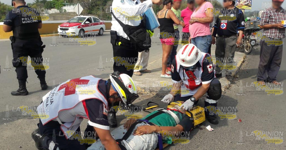 Tuxpan, Ver. – Un motociclista resultó con una herida en la cabeza, al chocar contra un vehículo cuyo conductor lejos de ayudarlo optó por pisar el acelerador y darse a la fuga.