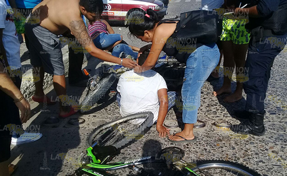 TUXPAN.- Joven motociclista resultó gravemente herido luego de que al chocar con un niño que manejaba una bicicleta, su cabeza golpeara contra el pavimento, su estado de salud es reportado critico, puesto que a pesar de que portaba casco este se rompió y uno de los pedazos se le habría incrustado en el cráneo, policías y oficiales de Tránsito tomaron conocimiento.