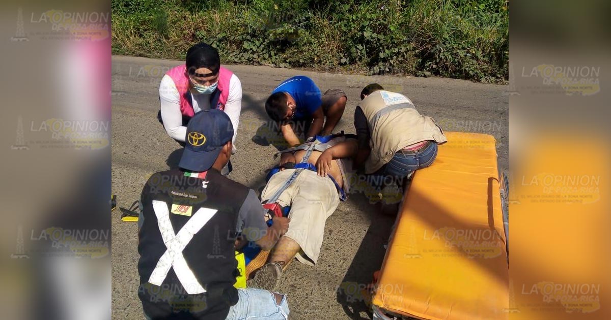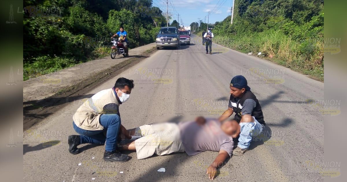 Álamo, Ver. – Santiago Rojas Santes, de 23 años de edad, con domicilio en la comunidad Hermenegildo Galeana, sufrió una fuerte lesión en la pierna, esto luego de que fuera impactado por una camioneta cuando este circulaba sobre la carretera Álamo-Ixhuatlán de Madero.