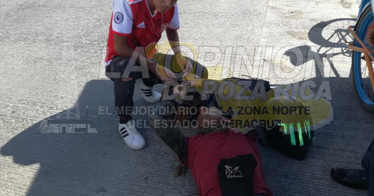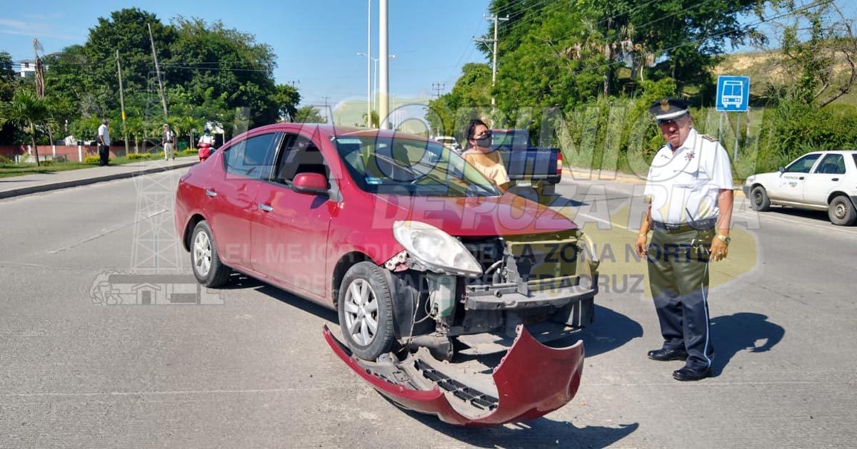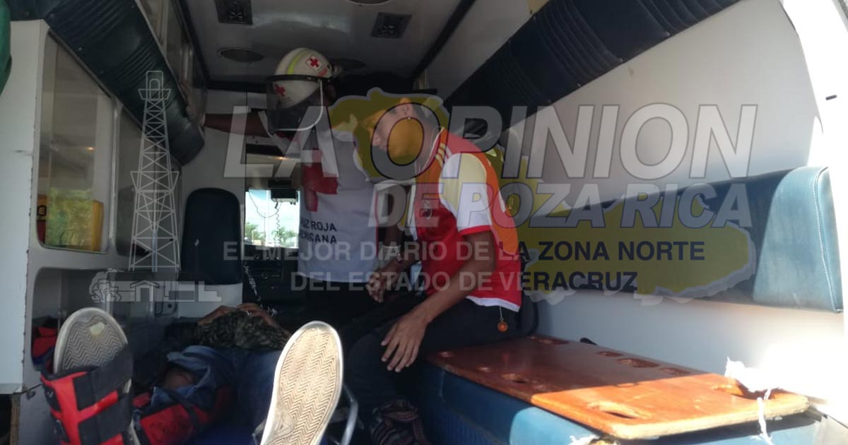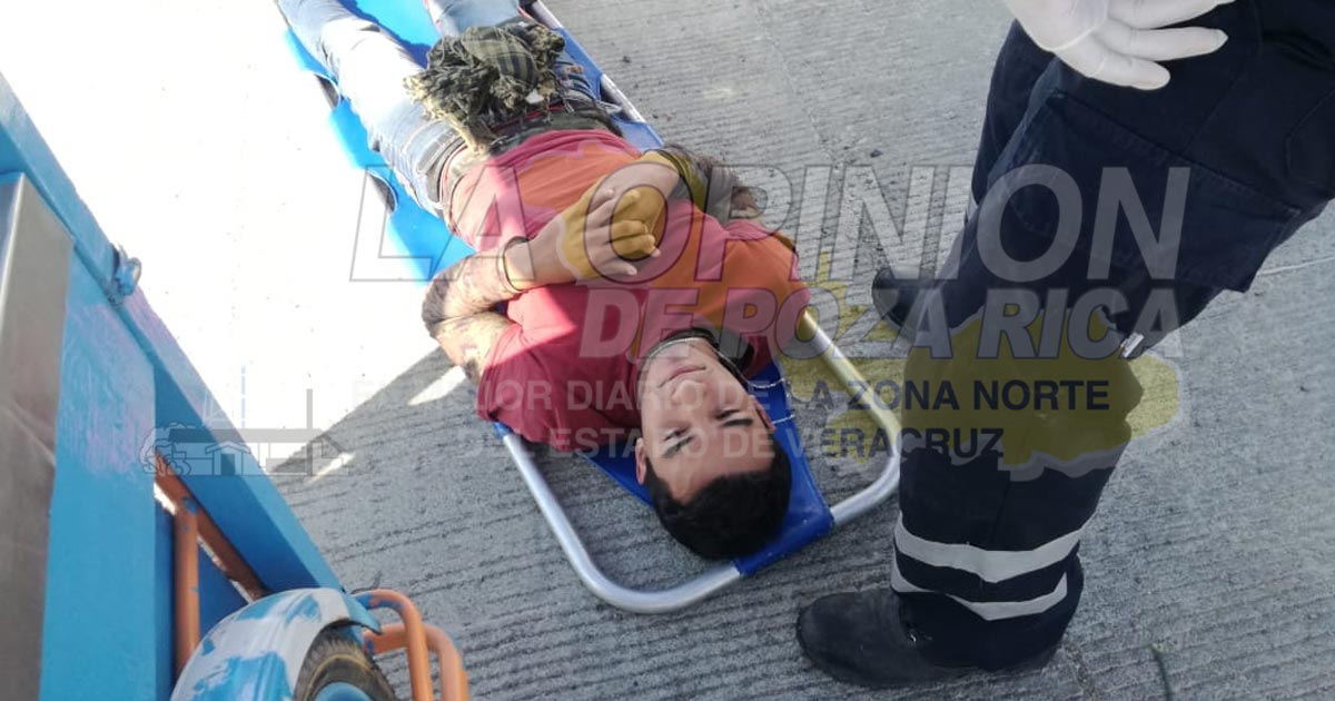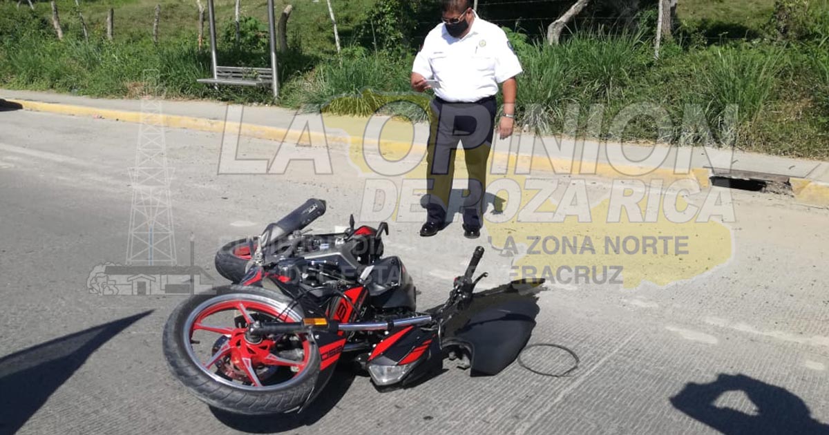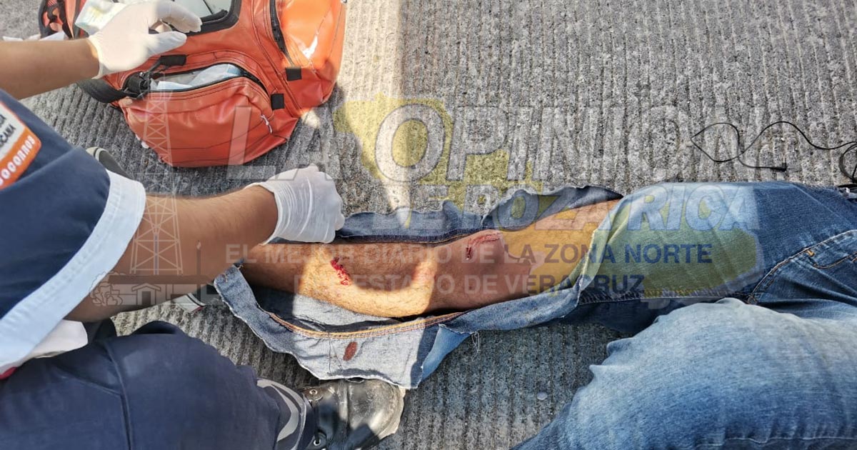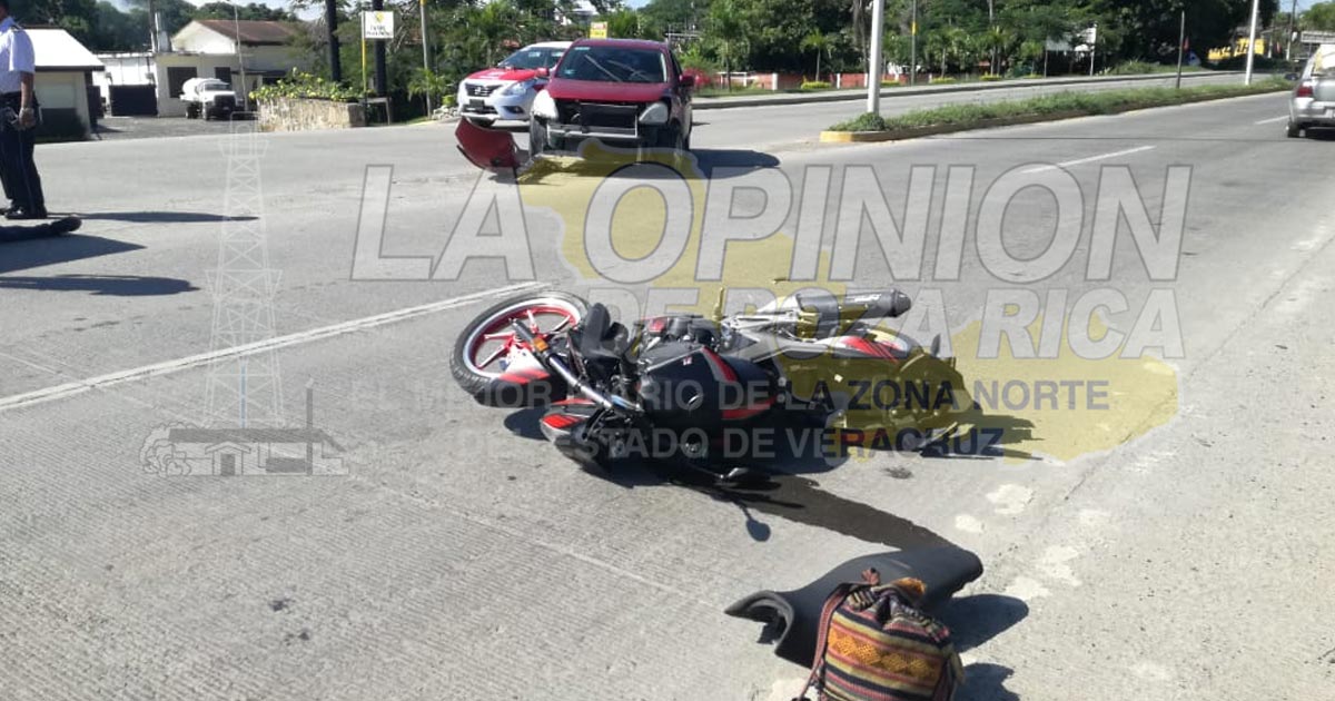 Tuxpan, Ver.- Empleado de la farmacia Guadalajara que manejaba una motocicleta resultó con una fractura en la pierna derecha al estrellarse con un automóvil cuya conductora intentaba dar una vuelta en U, en el libramiento de este puerto, otro joven que lo acompañaba también resultó lastimado pero no ameritó ser hospitalizado.