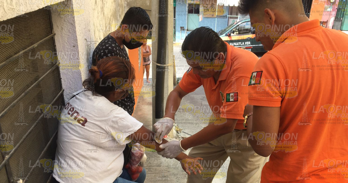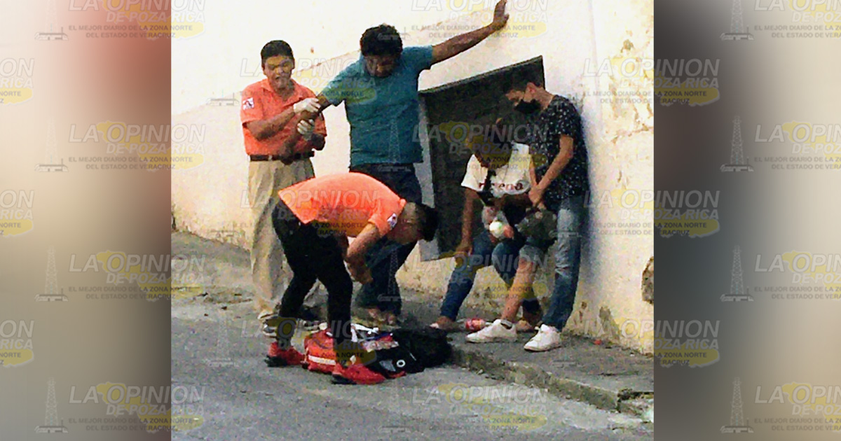 Papantla, Ver.- Tres personas que viajaban a bordo de una motocicleta terminaron con lesiones y golpes en diversas partes del cuerpo, siendo socorridos por paramédicos del Escuadrón Nacional de Rescate, quienes les brindaron los primeros auxilios.