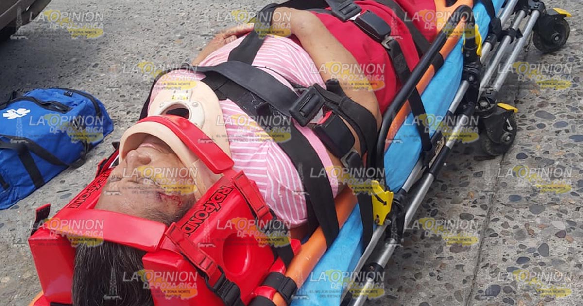 En el fuerte accidente, resultó lesionada la señora Catarina de Jesús “N”, tía del conductor de la motocicleta, quien presentó traumatismo cráneo encefálico y contusiones en brazos y piernas, por su parte el conductor del motociclo, presentó probable fractura en el brazo derecho y contusiones en brazos y piernas.