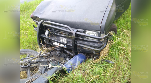 La otra unidad es una motocicleta Italica color negra en la que viajaban dos personas del sexo masculino, quienes resultaron gravemente lesionados al ser embestidos por la camioneta cuando intentaron ganarle el paso al cruzar de manera imprudencial la vía federal con dirección hacia la comunidad de Zacamixtle.