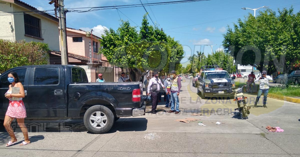 El motocobrador al parecer se desplazaba en su unidad de dos ruedas de la marca Honda sobre la calle 16 de septiembre al momento en que el conductor de la camioneta color negra tipo Ford sin placas le cortó la circulación.