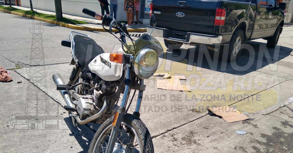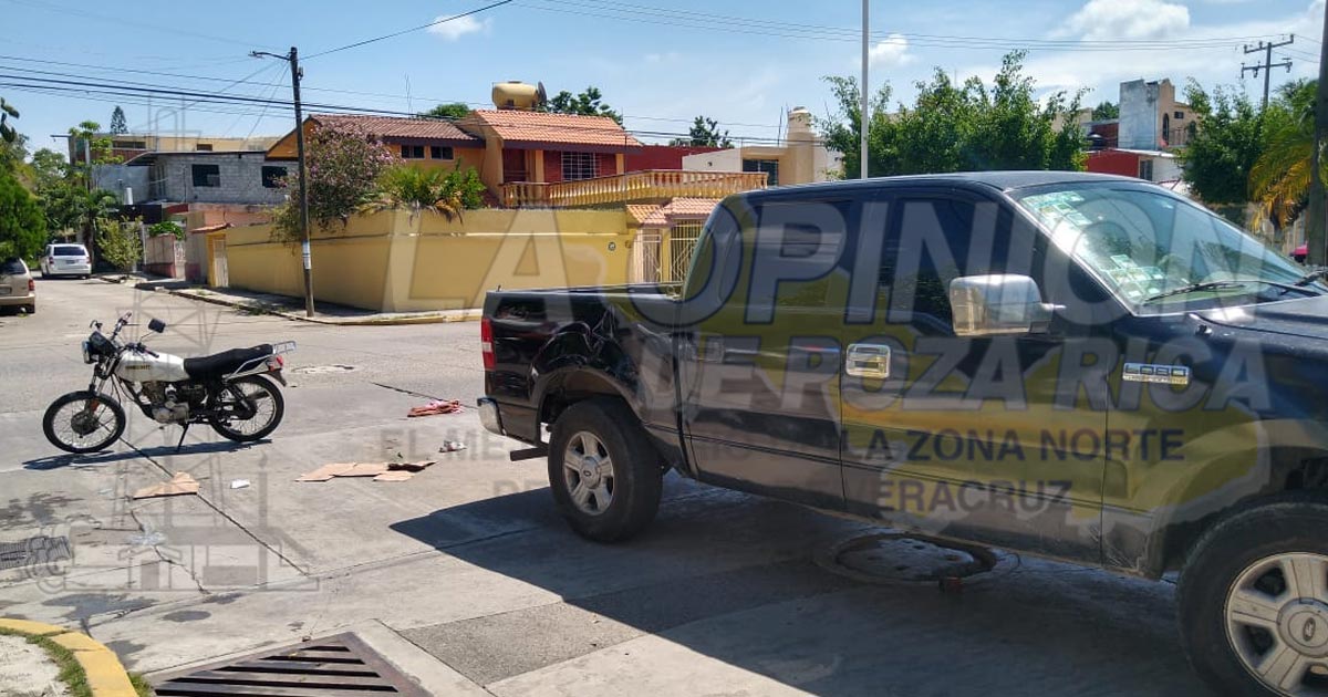 Poza Rica, Ver.- Un motocobrador resultó lesionado al estrellarse con todo y unidad en el costado, presuntamente luego de que el conductor le cortara la circulación en una calle preferencial.