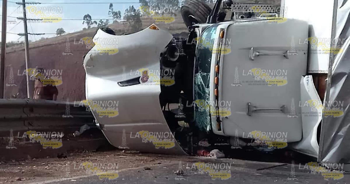En dicho accidente se vio involucrado un camión que transportaba llantas, mismo que se impactó contra un vehículo compacto tipo Chevy, el cual quedó totalmente destrozado, sobre el cemento asfáltico.