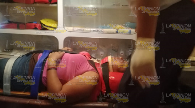 La fémina viajaba como copiloto en el taxi, número económico 1262, matrícula A642XEL del Estado, conducido por Erasmo González Rangel, de 38 años, con domicilio en la colonia Colegio Militar, de esta localidad cuando de forma repentina se impactó en un automóvil Chevrolet Meriva, color gris, con placas de circulación YAS 4909 del Estado, manejado por José Ignacio Guerrero Licona, de 20 años, vecino de la colonia Del Valle, de este puerto.