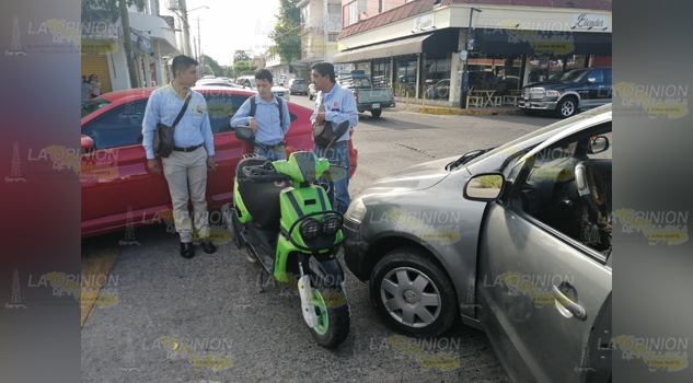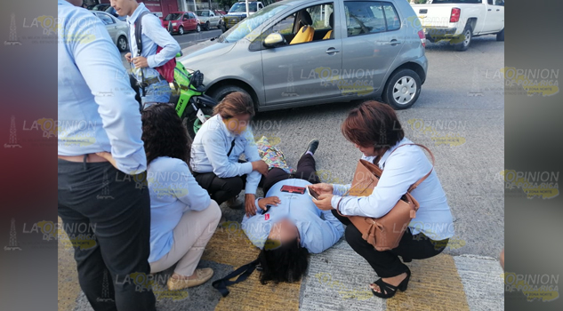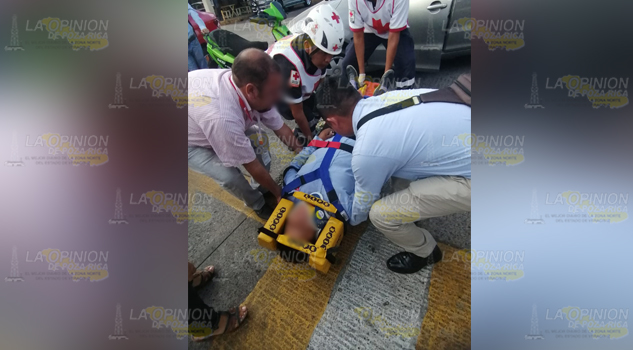 Con una probable fractura en la pierna izquierda terminó una joven mujer quién cuando transitaban sobre la calle Morelos de la colonia 27 de Septiembre, en una motocicleta de color Verde y al momento de cruzar la avenida Uruguay, fue impactada por un automóvil que también se incorpora a la avenida.