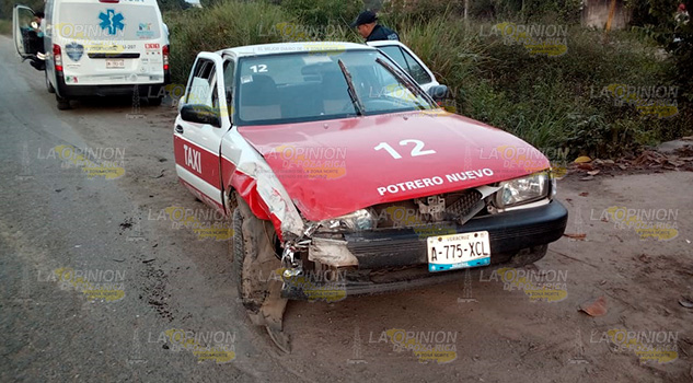 Una de las unidades involucradas es un taxi con el número económico 12 de Potrero Nuevo y un particular Tsuru color gris con placas de circulación UAU-64-67 de estado de Puebla.
