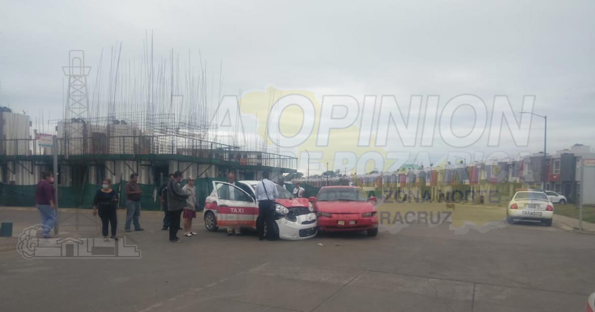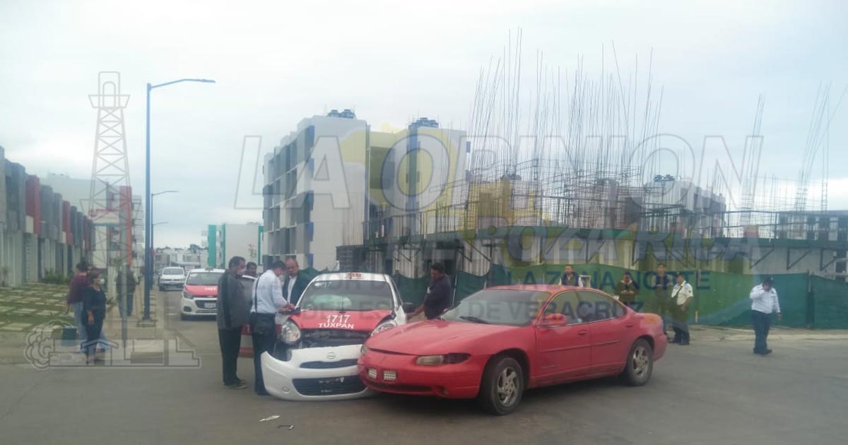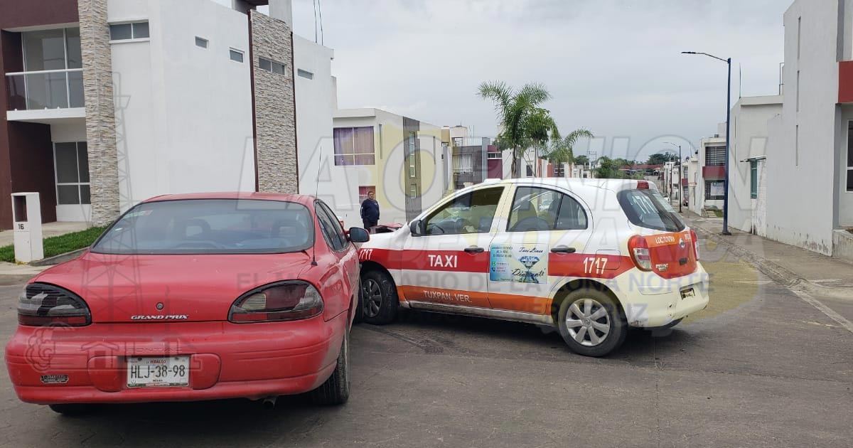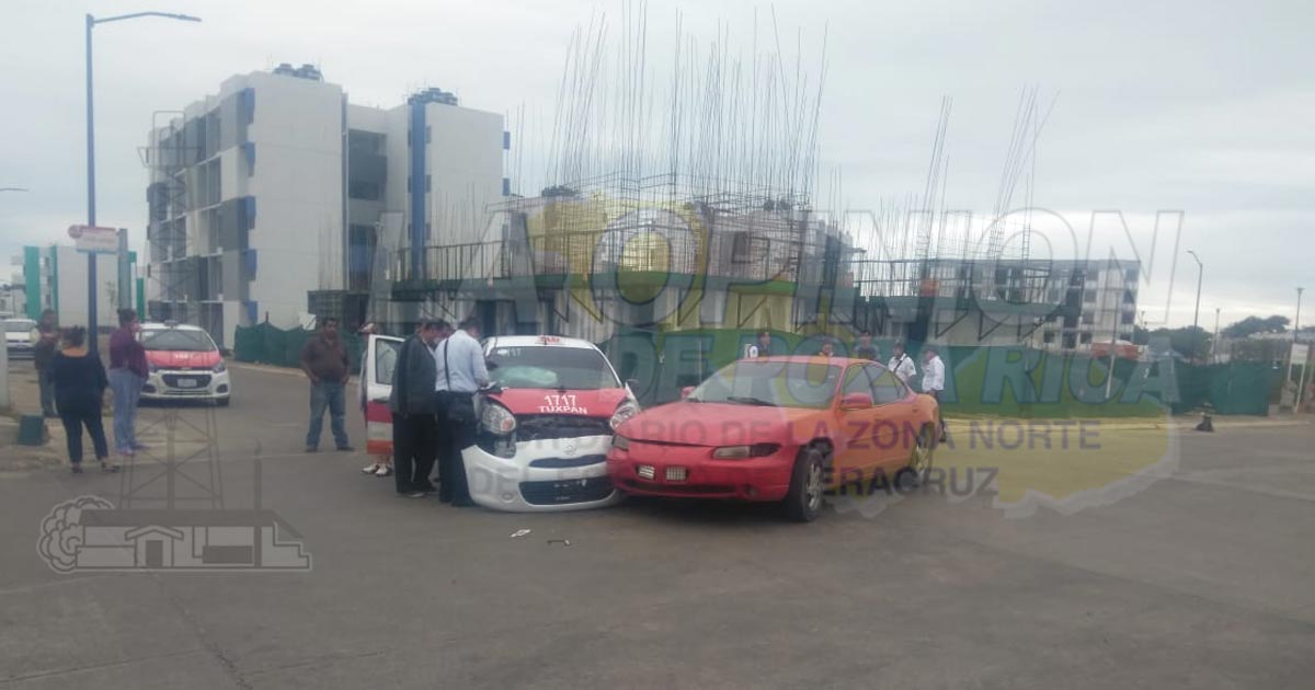 Tuxpan, Ver.- El choque de un taxi y un auto dejó como saldo cuantiosos daños materiales; autoridades de vialidad tomaron conocimiento destacando que al final los participantes llegaron a un acuerdo; cabe mencionar que el ruletero al parecer escapaba de la zona tras haber atropellado un perro.