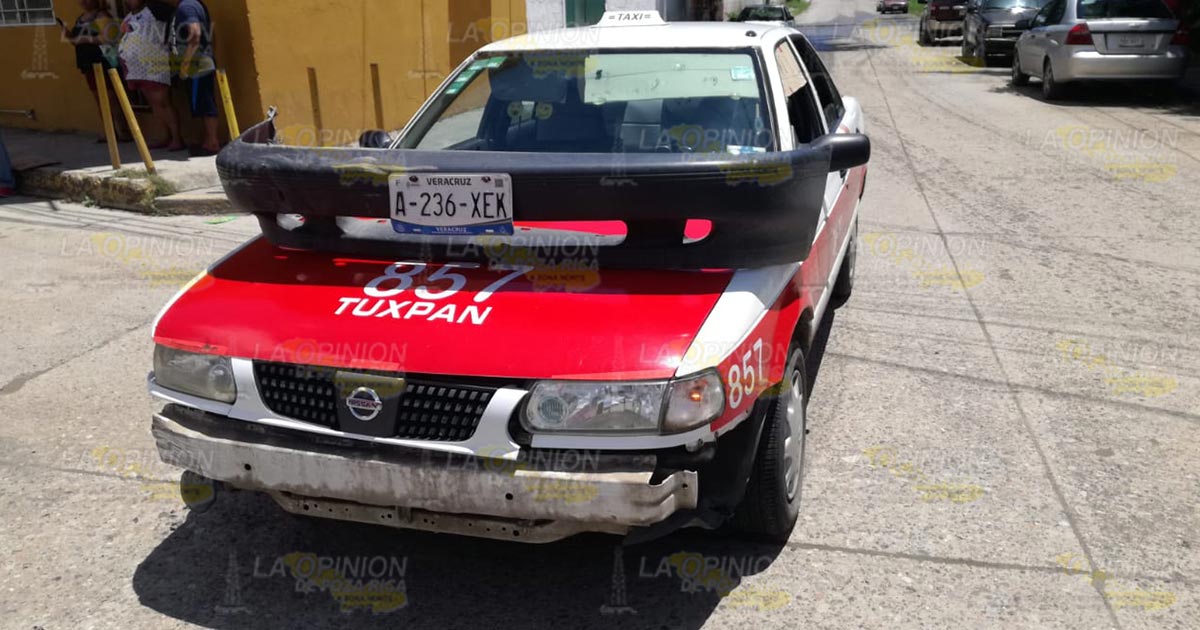 Tuxpan, Ver.- El choque de una camioneta con un taxi deja como saldo cuantiosos daños materiales; autoridades de vialidad no pudieron intervenir debido a que los conductores llegaron a un acuerdo.