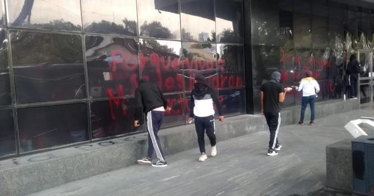 Ciudad de México.- Unos 70 estudiantes de la normal rural de Ayotzinapa “Isidro Burgos” protestaron con cohetones y pintas en la sede de la Fiscalía General de la República (FGR) en la Ciudad de México. Los estudiantes se manifestaron la mañana de este miércoles para exigir la liberación de los normalistas de la escuela de … Sigue leyendo Normalistas vandalizan la FGR