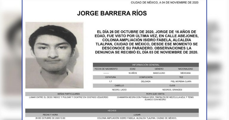 Ciudad de México.- Jorge Barrera Ríos, de apenas 16 años, desapareció luego de que, presuntamente, sus compañeros le jugaran un broma y le dijeran que tenía que hacer un examen presencial en la Prepa 5 de la UNAM, él se presentó, descubrió la treta y no volvió a casa. En redes sociales ya posicionaron la … Sigue leyendo “Nos falta Jorge”, claman redes