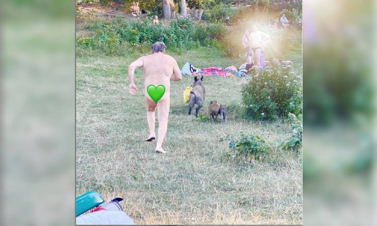 Adele Landauer, una entrenadora motivacional en Berlín, tomó las instantáneas y las compartió en su cuenta de Instagram el viernes, describiendo al hombre como “un verdadero héroe”. Explicó que “una hembra de jabalí salvaje con dos crías salió del bosque para buscar comida” y que “muchos de nosotros (nudistas) nos asustamos, pero los jabalíes parecían pacíficos”.