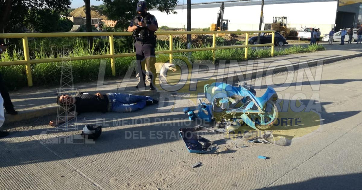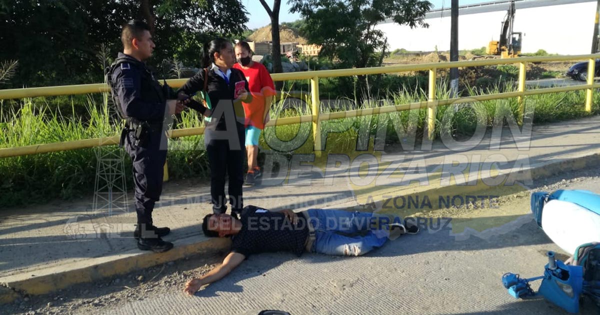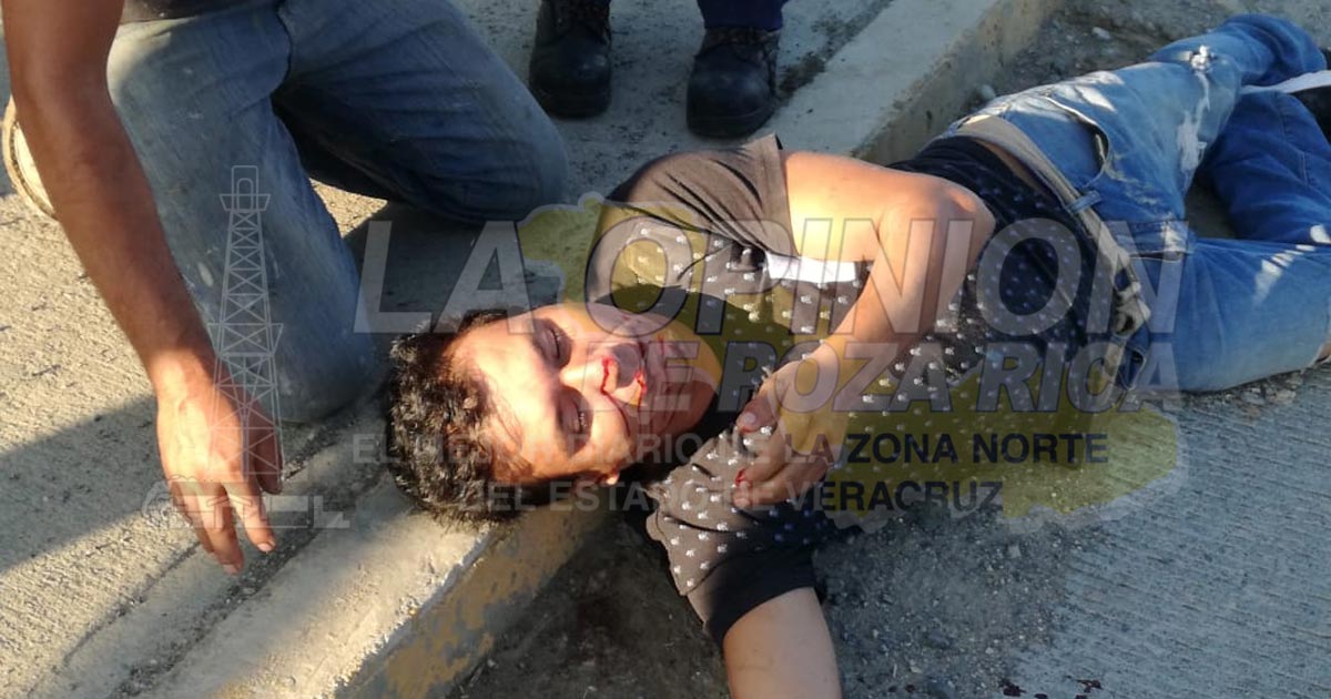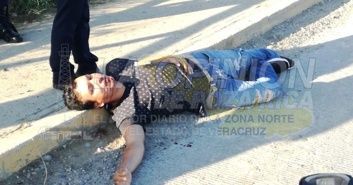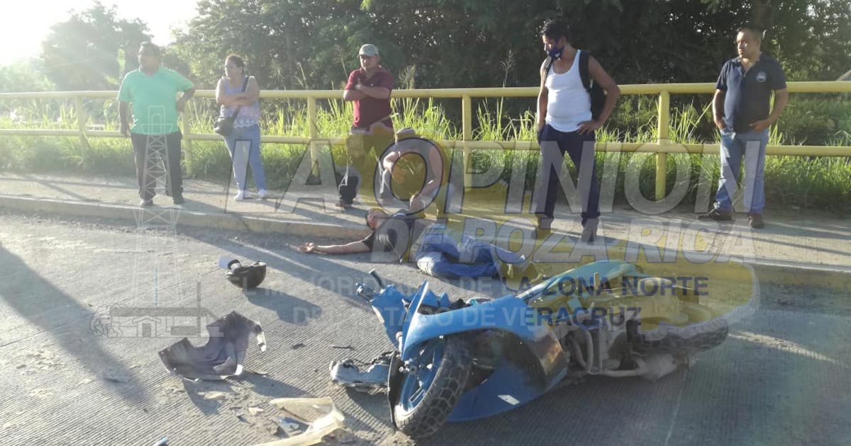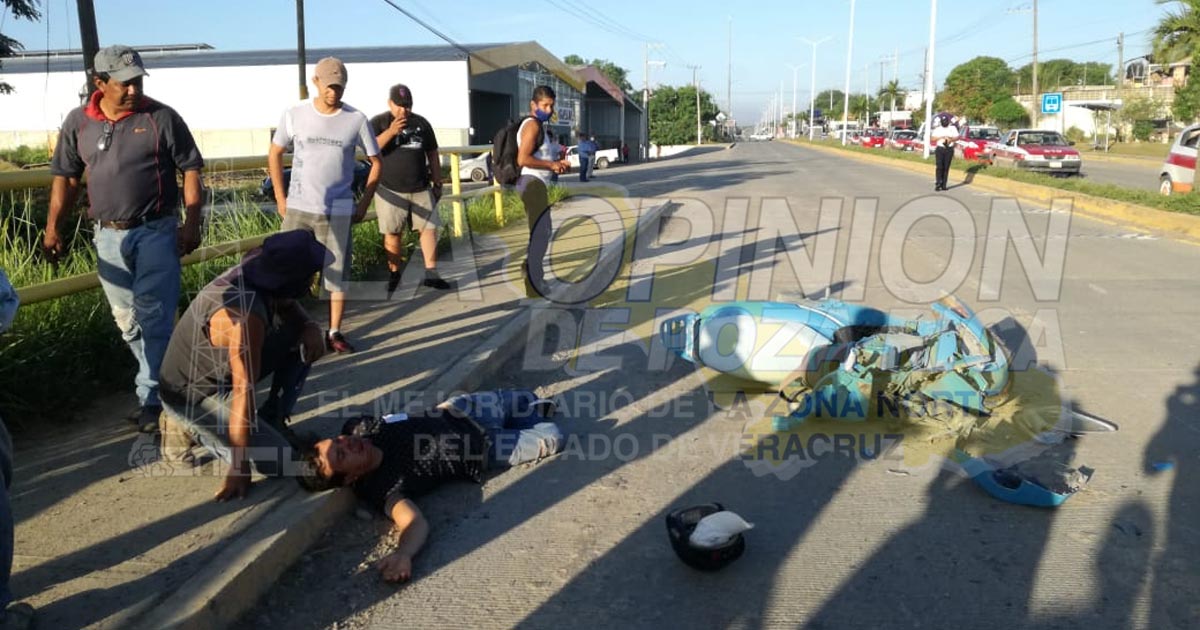 Tuxpan, Ver.- Obrero que manejaba una motocicleta se estrelló en la parte trasera de una camioneta y quedó gravemente herido luego de su cabeza impactara con el pavimento; paramédicos lo trasladaron a la clínica del IMSS.