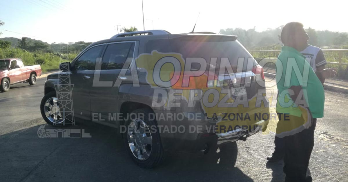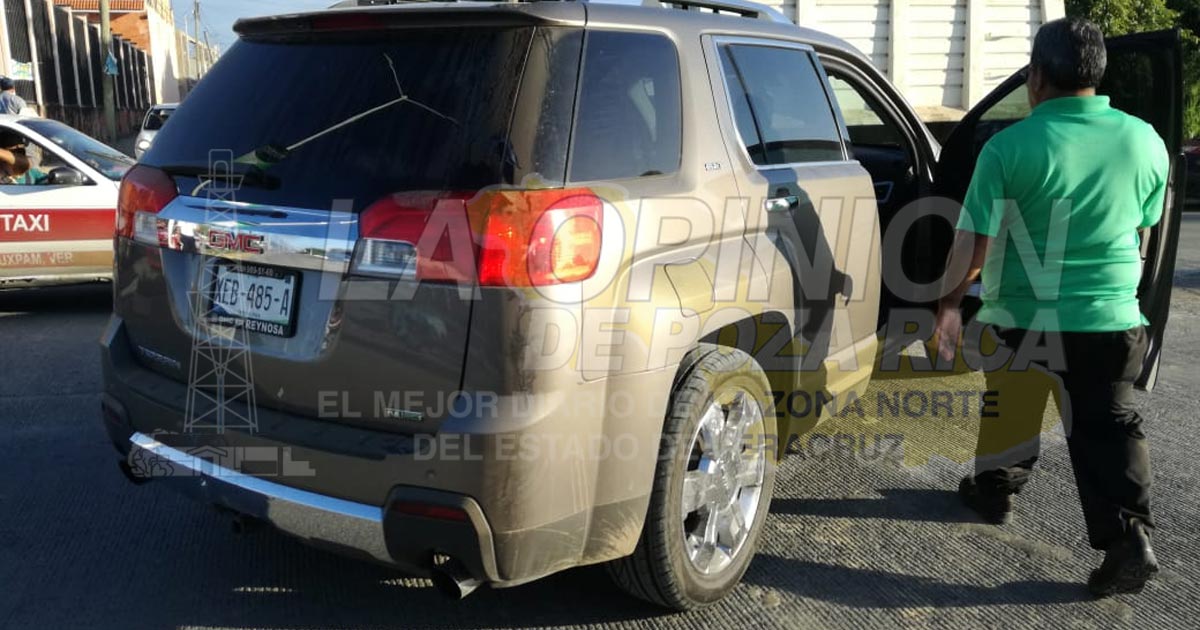 Dicho sujeto dijo ser trabajador de la empresa Cimex y que se dirigía hacia su centro laboral cuando se impactó en la parte posterior de una camioneta GMC Terrani, color arena, matrícula XEB485A del estado de Tamaulipas, José Rivas Aguilar.