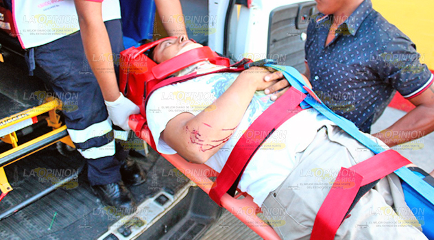 PAPANTLA, VER.- Un albañil que circulaba a bordo de una motocicleta, resultó lesionado luego de que un vehículo particular le cerrará la circulación al llegar a un peligroso crucero ubicado en las calles Andrés Quintana Roo y Juan de la luz Enríquez, en pleno centro de la ciudad.