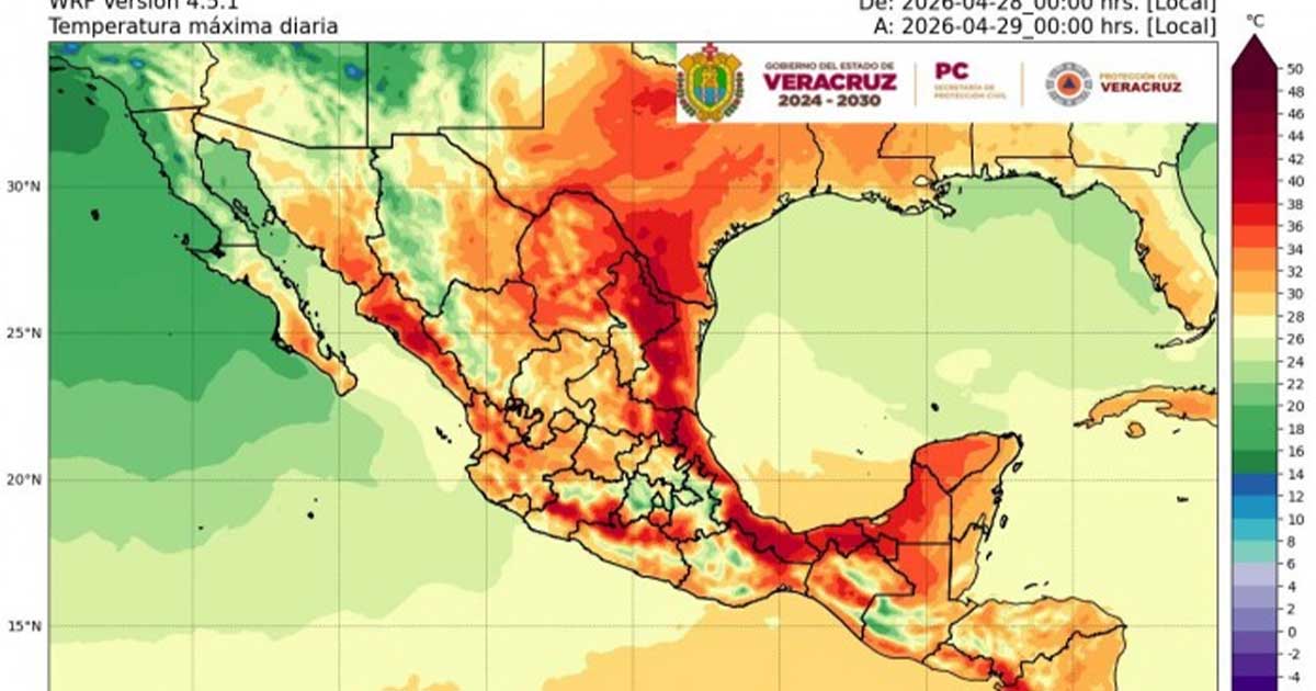 Veracruz.- La ola de calor continuará afectando al estado de Veracruz hasta el viernes 1 de mayo, con temperaturas elevadas, baja probabilidad de lluvias y condiciones de ambiente muy caluroso, principalmente durante el mediodía y primeras horas de la tarde, de acuerdo con el Aviso Especial emitido por autoridades meteorológicas.