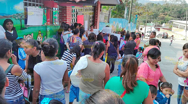TIHUATLÁN, Ver.- Padres de familia tomaron el jardín de niños «María Pape Carpentier», de la zona centro de esta villa, en demanda de que se asigne dos maestros que hacen falta desde septiembre del año pasado, debido a jubilaciones.