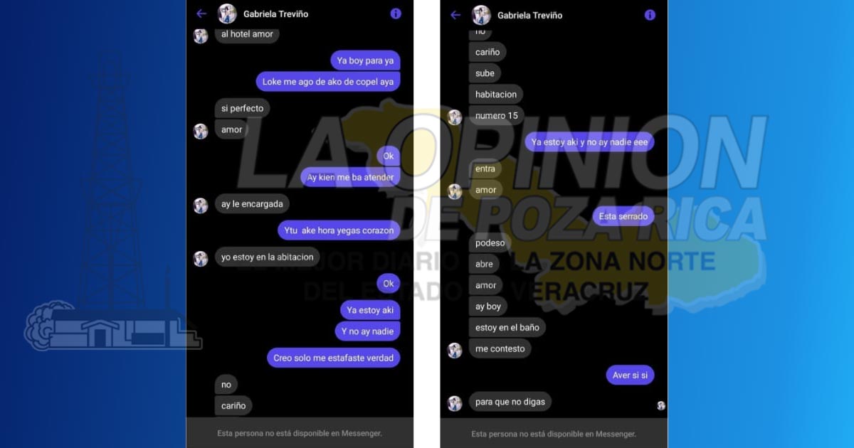 A los pocos minutos arribó al hotel y rentó un cuarto, pero al tratar de contactar a Gabriela para avisarle que ya estaba “listo”, se percató que lo había bloqueado. Fue ahí donde se dio cuenta que había sido engañado.