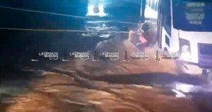 El camión avanzó, pero cuando estaba a mitad del puente-vado, la corriente lo arrastró un par de metros y estuvo a punto de volcar, por lo que el chofer tuvo que detener la marcha en un intento para estabilizarlo, mientras que los pasajeros vivieron momentos de pánico.