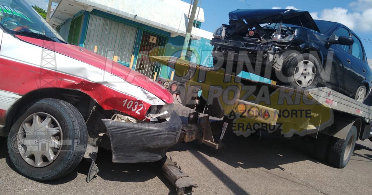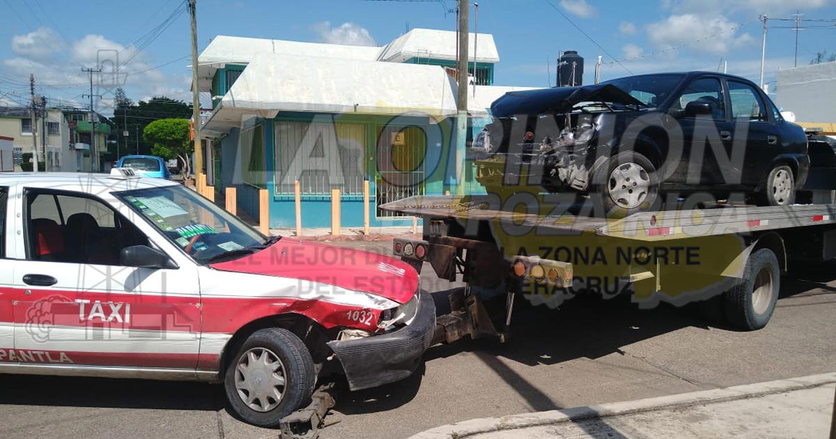 Poza Rica, Ver. – La falta de precaución de un taxista del municipio de Papantla provocó una aparatosa carambola que dejó como saldo dos vehículos con daños materiales.