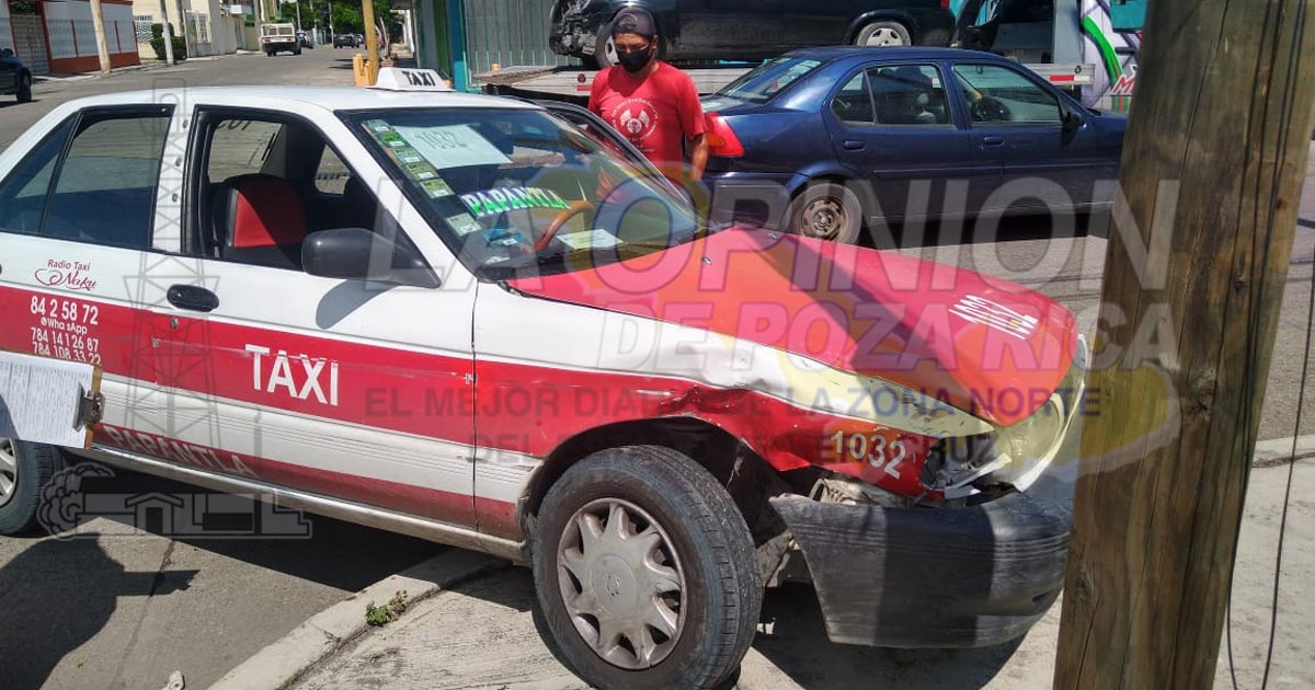 El taxista que conducía la unidad de alquiler marcada con el numero 1032 intentó cruzar una calle preferencial y acabó por chocar contra un vehículo tipo Chevy color negro, mismo que se proyectó e impacto en la parte trasera de una camioneta estacionada.