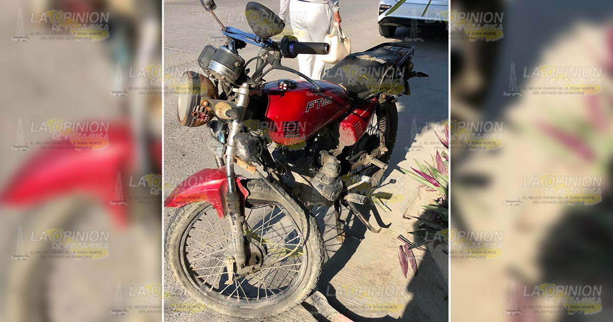 Poza Rica, Ver.- Técnicos en urgencias médicas de Cruz Roja de esta ciudad, al filo de las ocho de la mañana acudieron a la avenida 20 de Noviembre esquina con calle Heriberto Jara Corona para atender a una motociclista qué resultó lesionada al ser impactado el caballo de acero en que viajaba por el taxi número 3509 de esta ciudad.
