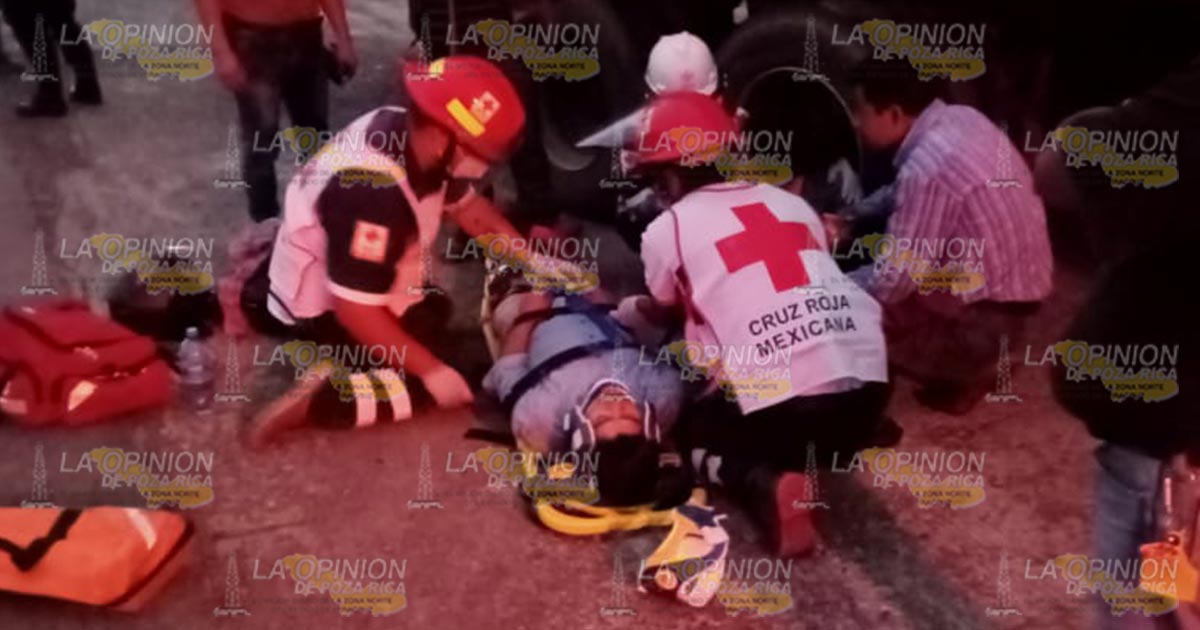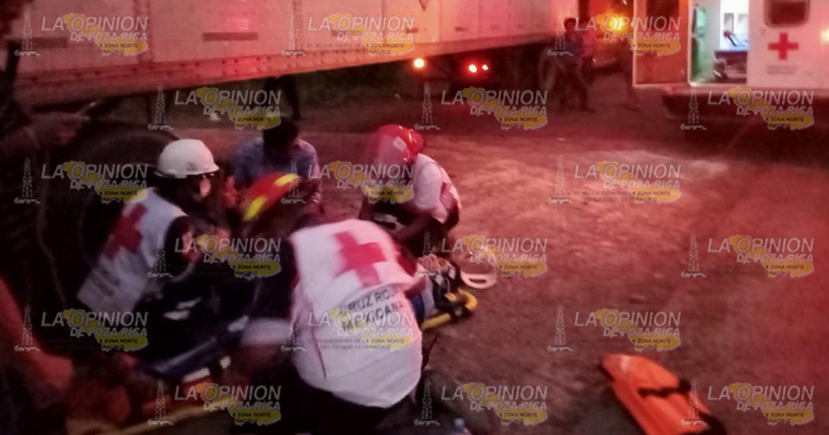 Naranjos, Ver.- Con severas lesiones resultaron un hombre y una mujer que transitaban a bordo de una motocicleta en la carretera federal Tuxpan-Tampico la cual se impactó por alcance sobre un tráiler, personal de Cruz Ámbar y Cruz Roja acudieron a brindar el apoyo trasladándolo a los heridos hospitales de la ciudad.