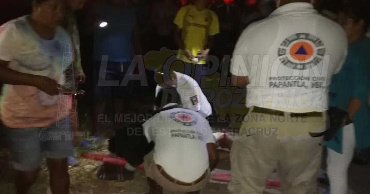 Papantla, Ver.- Aparatoso accidente se registró en la noche de este domingo en la localidad de Francisco I. Madero, hasta donde arribaron elementos de Protección Civil municipal para socorrer a dos jóvenes que habían sufrido una caída de su motocicleta.