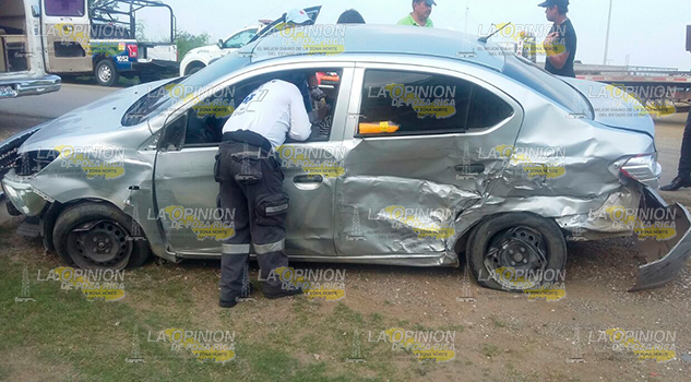 Esto provocó que la unidad quedara sin control y chocara el costado izquierdo de un auto Dodge Attitud, en el que iba el conductor y dos menores de edad, quienes resultaron lesionados.