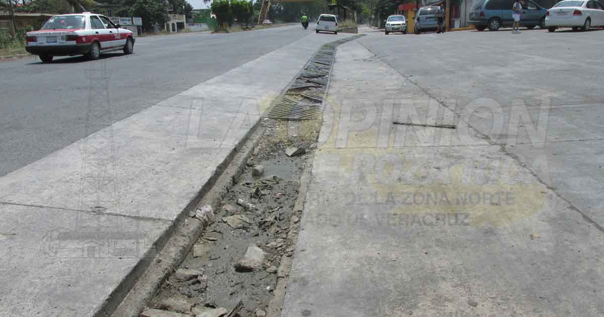 Los daños se observan a lo largo de todo el tramo del dren pluvial, desde la zona del puente peatonal hasta la entrada a la calle que da acceso a la colonia Unidad y Trabajo.