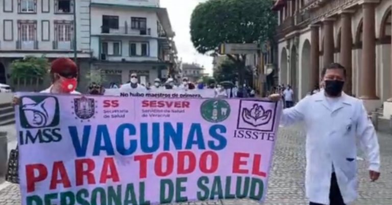 Personal de Salud marchó nuevamente este domingo por las calles de la ciudad de Xalapa para exigir ser vacunados…