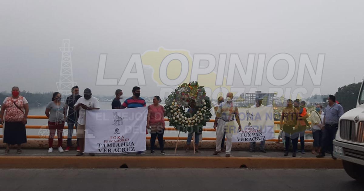 Tuxpan, Ver.- Pescadores se manifiestan en inmediaciones del puente Tuxpan, lanzan un SOS al gobierno federal al igual que a British Petroleum (BP).